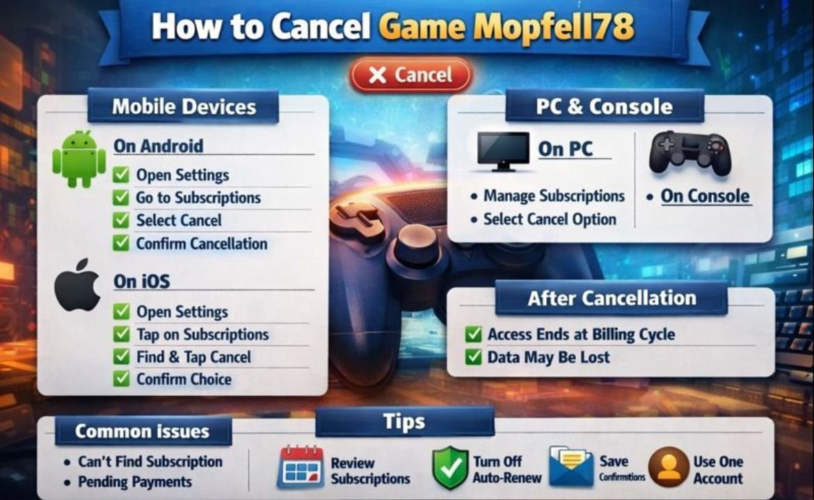 Understanding how to cancel game mopfell78 is important for players who want to stop gameplay, manage subscriptions, or remove the game from their device. Many users install games quickly but later realize they no longer need them. This guide explains how to cancel game mopfell78 in simple terms, using clear steps and practical tips. The goal is to help you cancel smoothly without confusion or data loss.